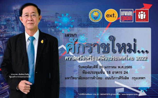 ดร.จุมพล โพธิสุวรรณ บรรณาธิการข่าว สำนักข่าวบางกอกทูเดย์ เปิดเผยว่า เนื่องในโอกาสก้าวสู่ปีที่ 20 ของบางกอก ทูเดย์ จึงได้ร่วมกับคณะวิทยพัฒน์ มาวิทยาลัยหอการค้าไทย และเว็บไซต์ข่าว The Leader Asia จัดการสัมมนาเรื่อง “ศักราชใหม่…ความหวัง(หรือแค่ฝัน)ประเทศไทย 2022” ในวันพฤหัสบดีที่ 20 มกราคม พ.ศ.2565 เวลา 13.00-16.00 น. ณ ห้องประชุมชั้น 18 อาคาร 24 มหาวิทยาลัยหอการค้าไทย ถนนวิภาวดีรังสิต กรุงเทพฯ โดยได้เชิญนายอาคม เติมพิทยาไพสิฐ รัฐมนตรีว่าการกระทรวงการคลัง ปาฐกถาพิเศษหัวข้อ “ แรงขับเคลื่อนประเทศไทยในศักราชใหม่ 2022”