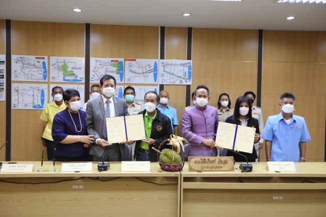 วันที่ 20 มิถุนายน 2565 เวลา 09.30 น. นายโชตินรินทร์ เกิดสม ผู้ว่าราชการจังหวัดชุมพร ร่วมเป็นสักขีพยานในพิธีลงนามบันทึกข้อตกลงความร่วมมือการสร้างรายได้แก่ชุมชนพัฒนา คุณภาพความเป็นอยู่ และสร้างมาตรฐานการผลิตทุเรียนคุณภาพ ภายใต้แพลตฟอร์มแอปพลิเคชัน Kasettrack ระหว่าง บริษัท ศิริมงคล คอร์เปอเรท กรุ๊ป จำกัด กับ บริษัท วีเคฟซอฟท์ จำกัด วิสาหกิจชุมชนผู้ผลิตทุเรียนคุณภาพเนิน 491 ต.รับร่อ และสหกรณ์การเกษตรบ้านพันวาล จำกัด โดยมี นายปรีดา เยี่ยมสวัสดิ์ ประธานกรรมการ, นางผุสดี เยี่ยมสวัสดิ์ บริษัทศิริมงคล คอร์เปอเรท กรุ๊ป จำกัด, นายประวิทย์ จันวะดี ประธานกรรมการบริษัทวีเอฟ ซอฟท์ จำกัด, นายบรรเลง ศรีสวัสดิ์ ประธานวิสาหกิจชุมชน ผู้ผลิตทุเรียนคุณภาพเป็น 491 และสหกรณ์การเกษตรบ้านพันวาล จำกัด ร่วมกันลงนาม 4 ฝ่าย และมีนายศิริ เล่าสกุล นายกสมาคมทุเรียนใต้ นายวีรวัฒน์ จีรวงศ์ นายกสมาคมชาวสวนผลไม้จังหวัดชุมพร ดร.อภิชาติบุตร รอดยัง รักษาการผู้จัดการสาขาภาคกลางตอนกลาง ผู้แทนสำนักงานส่งเสริมเศรษฐกิจดิจิทัล พาณิชย์จังหวัดชุมพร เกษตรจังหวัดชุมพร สหกรณ์จังหวัดชุมพร และนายบรรจง ศิริปุญญะ ประธานกรรมการร่วมลงนามเป็นสักขีพยาน
