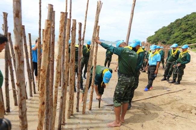 ชุมพร – ร่วมใจ ทำโครงการ ปักรั้วไม้สลายคลื่น อุทยานแห่งชาติหมู่เกาะชุมพร วัดสุวรรณคูหาวารี (วัดถ้ำโพงพาง)