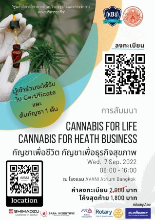 พลาดไม่ได้ !คณะบริหารธุรกิจ สถาบันเทคโนโลยีพระจอมเกล้าเจ้าคุณทหารลาดกระบัง สจล. จัดงานสัมมนาวิชาการ “กัญชาเพื่อชีวิต :กัญชาเพื่อธุรกิจสุขภาพ” Cannabis for Life : Cannabis for Health Business ที่ โรงแรม AVANI Atrium Bangkok วันพุธที่ 7 กันยายน 2565
