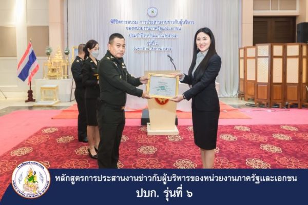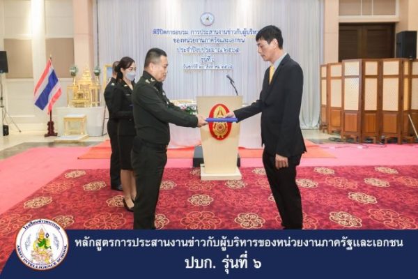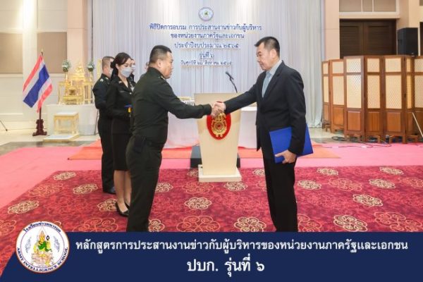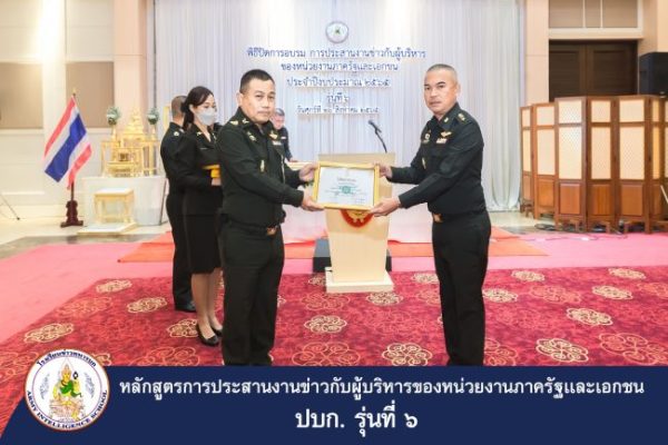 พล.ท. ดิเรก บงการ เจ้ากรมข่าวทหารบก/ผู้บัญชาการโรงเรียนข่าวทหารบก รับฟังการแถลงผลงานการสำรวจพื้นที่เพื่อการรักษาความปลอดภัย และเป็นประธานในพิธีปิดการอบรมประสานงานข่าวของผู้บริหารหน่วยงานภาครัฐและเอกชน รุ่นที่ 6 (ปบก. 6) ณ ห้องมัฆวานรังสรรค์ สโมสรทหารบก เมื่อ 26 กรกฏาคม 2565 โดยมี