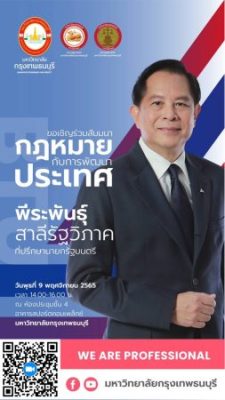 ม.กรุงเทพธนบุรี เชิญ “พีระพันธุ์ สาลีรัฐวิภาค” เสวนาพิเศษหัวข้อ “กฎหมายกับการพัฒนาประเทศ” 9 พ.ย.นี้
