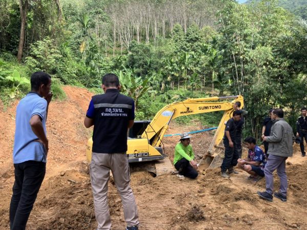 2.นายสุนันท์ เพชรทอง อายุ 60 ปี บ้านเลขที่ 919 ม.17 ต.รับร่อ อ.ท่าแซะ จ.ชุมพร (ผู้ควบคุมงาน)พร้อมตรวจยึดของกลาง รถแบ็คโฮ สีเหลือง ยีห้อ sumitimo รุ่น sn 210 หมายเลขเครื่องยนต์ stn 210 t 6 loobh 2818