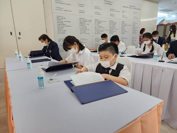 Administrators,teachers, staff and student representatives of Sarasas Witaed Ratchaphruek School participate in signing the book of blessing to wish Her Royal Highness Princess Bajrakitiyabha Narendiradebyavati Kromluang Rajsarinee Siribhat Mahawatcharajthida a speedy recovery.