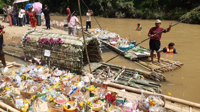 ชุมพร – พุทธศาสนิกชนแห่ร่วมงานประจำปีประเพณีส่งตายายตามสายน้ำวัดเนินทอง