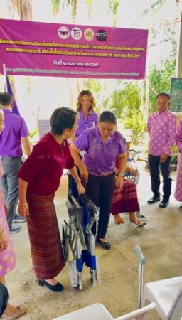วันที่ 2 เมษายน 2567 นางเธียรรัตน์ นะวะมะวัฒน์ ประธานมูลนิธิหัวใจบริสุทธิ์ พร้อมด้วยหน่วยงานสังกัดกระทรวงแรงงาน จังหวัดประจวบคีรีขันธ์ ภาคเอกชน รวมถึงทีมงานมวลชนสัมพันธ์ (CSR) กลุ่มไทยสมายล์ และรายการสถานีประชาชน สถานีข่าวไทยพีบีเอส ร่วมกิจกรรมถวายความจงรักภักดี ลงพื้นที่มอบรถเข็นวีลแชร์ และอุปกรณ์เพื่อช่วยเหลือ