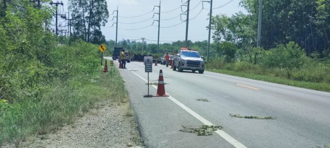ชุมพร – อุบัติเหตุเทเลอร์ลงข้างทาง ที่ หม้อแปลง ไฟฟ้าแรงสูง เจ็บ 1 ราย
