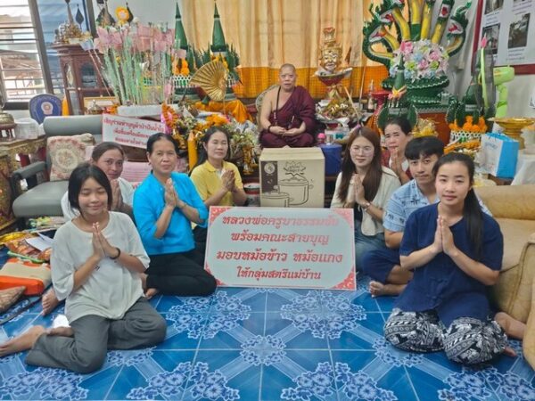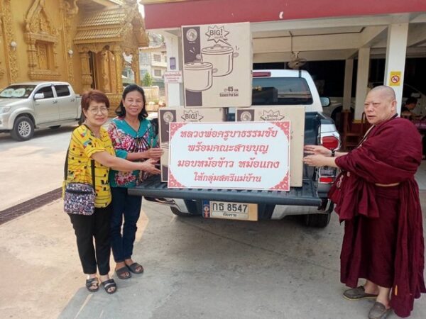 องค์บุญแห่งล้านนา ครูบาธรรมชัย เจ้าอาวาสวัดศรีพันต้น แจกหม้อข้าวหม้อแกง ให้แก่สตรีแม่บ้านเพื่อช่วยงานสังคม