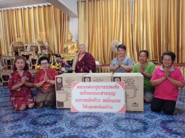 ผู้สื่อข่าวรายงานว่าครูบาธรรมชัย เจ้าอาวาสวัดศรีพันต้น สำนักสงฆ์ปฏิบัติธรรมชัย จังหวัดน่านและ สำนักปฏิบัติธรรม ธรรมชัย แผ่นดินทอง อำเภอ หนองเสือ จังหวัดปทุมธานี ได้แจกหม้อข้าวหม้อแกง เพื่อให้สตรีแม่บ้านในเขตชุมชนได้ใช้ เพราะหม้อเป็นกิจวัตรที่สตรีแม่บ้านจะต้องใช้เป็นประจำ บางวัดบางกลุ่มสตรีแม่บ้านไม่มีปัจจัยซื้อตามชนบท หลวงพ่อครูบาธรรมชัย(กล่าวว่า)ท่านเล็งเห็นว่า