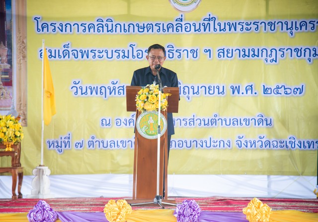 ซึ่งจังหวัดฉะเชิงเทราได้ดำเนินการ จัดเก็บข้อมูลวิเคราะห์ถึงปัญหาด้านการเกษตรในพื้นที่ เพื่อจัดให้บริการคลินิกเกษตรเคลื่อนที่ในรูปแบบบูรณาการ งานบริการวิชาการเกษตรทุกสาขาการสาธิตส่งเสริมอาชีพให้แก่เกษตรกร จัดนิทรรศการความรู้ทางการเกษตรเครื่องมือ อุปกรณ์เข้าช่วยในการปฏิบัติงาน ณ จุดเดียวในรูปแบบให้บริการเคลื่อนที่ ในวันนี้เปิดให้บริการคลินิกเกษตร ได้แก่ คลินิกพืช คลินิกดินคลินิกข้าว คลินิกปศุสัตว์ คลินิกประมง คลินิกชลประทาน คลินิกสหกรณ์คลินิกบัญชี คลินิกกฎหมาย คลินิกส่งเสริมการเกษตร และคลินิกทั่วไปโดยมีเกษตรกรในพื้นที่ตำบลเขาดิน และตำบลใกล้เคียงของอำเภอบางปะกง เข้าร่วมงาน จำนวน ๑๐๐ ราย
