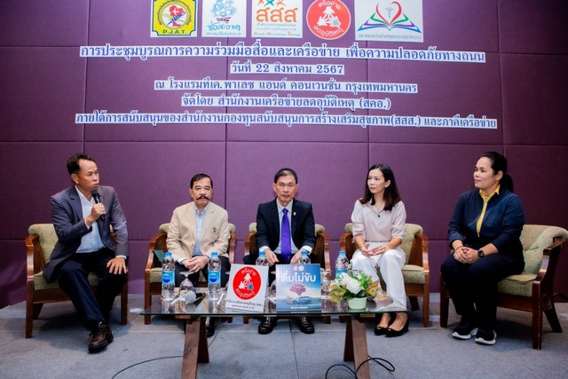 วันที่ 22 ส.ค.67 – ณ โรงแรม ทีเค.พาเลซ แอนด์ คอนเวนชั่น ถ.แจ้งวัฒนะ เขตหลักสี่ กรุงเทพฯ- ในการประชุมบูรณการความร่วมมือสื่อและเครือข่ายเพื่อความปลอดภัยทางถนน ซึ่งจัดขึ้นโดยสำนักงานเครือข่ายลดอุบัติเหตุ  ภายใต้การสนับสนุนของสำนักงานกองทุนสนับสนุนการสร้างเสริมสุขภาพ (สสส.) และภาคีเครือข่าย ได้มีเวทีเสวนา “พลังสื่อและเครือข่าย จะร่วมผลักดันนโยบายเพื่อความปลอดภัยทางถนนได้อย่างไร?” เพื่อร่วมแลกเปลี่ยนความคิดเห็นและหาแนวทางหนุนเสริมการทำงานสร้างความปลอดภัยทางถนนร่วมกัน ผู้ร่วมเสนา ได้แก่ นางก่องกาญจน์ ทักษ์หิรัญฤทธิ์  ผู้อำนวยการสำนักสนับสนุนการควบคุมปัจจัยเสี่ยงทางสังคม สสส. นายไชยยงค์ มณีรุ่งสกุล สมาชิกวุฒิสภา นายสุทนต์  กล้าการขาย  สมาชิกวุฒิสภา  นางสาวประสพสุข จุรุทา  นักวิชาการสาธารณสุขชำนาญการ สำนักงานสาธารณสุขอำเภอพนมไพร จังหวัดร้อยเอ็ด  ผู้แทนสมาคมเครือข่ายหมออนามัยวิชาการ และนายพรหมมินทร์ กัณธิยะ  ผู้อำนวยการสำนักงานเครือข่ายลดอุบัติเหตุ (สคอ.)  พร้อมได้ยื่นข้อเสนอต่อสมาชิกวุฒิสภาเพื่อช่วยนำข้อเสนอไปขับเคลื่อนและเร่งผลักดันให้นโยบาย เรื่องความปลอดภัยทางถนนเกิดขึ้นจริงในวุฒิสภาและรัฐบาลต่อไป