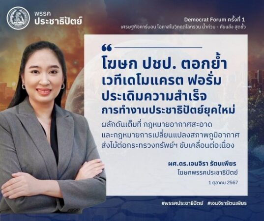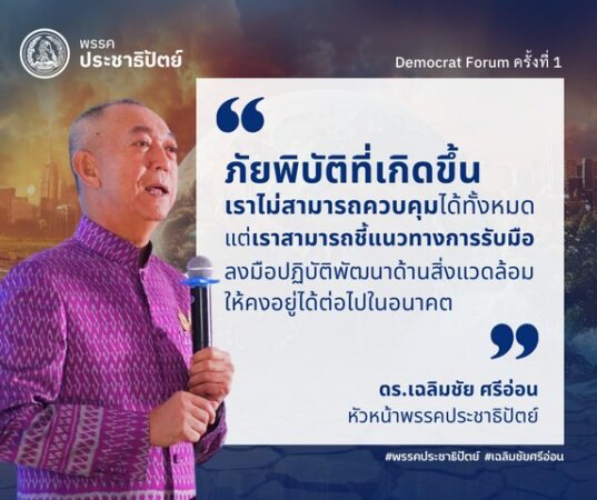 พรรคประชาธิปัตย์ได้จัดงาน“เดโมแครต ฟอรั่ม (Democrat Forum)ครั้งที่ 1” หัวข้อ“เศรษฐกิจคาร์บอน: โอกาสในวิกฤตโลกรวนน้ำท่วมภัยแล้งสุดขั้ว“
