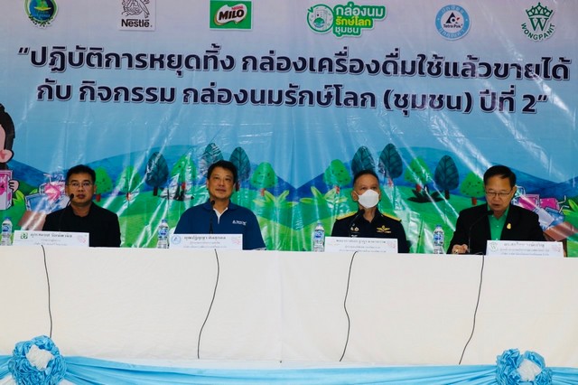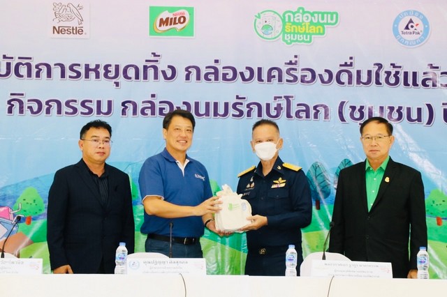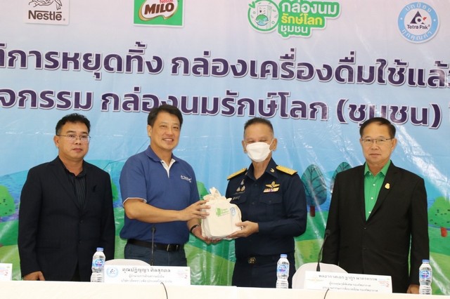 พลอากาศเอก ฐากูร นาครทรรพ ผู้ทรงคุณวุฒิพิเศษ กองทัพอากาศ ประธานกรรมการสิ่งแวดล้อม กองทัพอากาศ เป็นหน่วยงานที่มีนโยบายและแผนปฏิบัติงาน ในการลดปัญหาขยะ รักษาสิ่งแวดล้อม แบบมีส่วนร่วม ของผู้อยู่อาศัย ในเขตพื้นที่ ของกองทัพอากาศที่มีอยู่ทั่วประเทศ มีความยินดีให้การสนับสนุน กิจกรรม ปฏิบัติการ“หยุดทิ้ง กล่องเครื่องดื่มใช้แล้วขายได้ กับ กิจกรรม กล่องนมรักษ์โลก (ชุมชน) ปีที่ ๒” เป็นการสร้างการรับรู้ ปลูกสร้างจิตสำนึกให้มีการคัดแยกขยะต้นทางนำมาสร้างประโยชน์ได้อย่างแท้จริง กิจกรรมกล่องเครื่องดื่มใช้แล้ว แลกผลิตภัณฑ์ใหม่ ไมโล ในครั้งนี้ เกิดจากการผนึกกำลัง ร่วมมือกัน ของภาคเอกชน ที่ได้จัดขึ้น ระหว่าง บริษัท เนสท์เล่ (ไทย) จํากัด บริษัท เต็ดตรา แพ้ค (ประเทศไทย) จำกัด บริษัท วงษ์พาณิชย์ อินเตอร์เนชั่นแนล จำกัด และ บริษัทอีโค่ เฟรนด์ลี่ ไทย จำกัด การคัดแยกบรรจุภัณฑ์กล่องเครื่องดื่มใช้แล้ว หลังการบริโภคจากต้นทาง นับเป็นสิ่งที่เป็นประโยชน์มาก สำหรับสังคมไทย ที่มีปัญหาขยะ