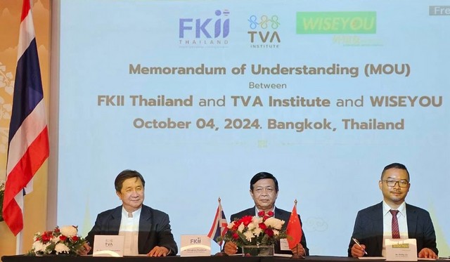 จากนั้นมีพิธีลงนามบันทึกข้อตกลงความร่วมมือระหว่างเอฟเคไอไอ. ไทยแลนด์( FKII Thailand )โดย นายอลงกรณ์ พลบุตรกับสถาบันทิวา (TVA) โดย คุณชยดิฐ หุตานุวัชร์ ประธานสถาบันทิวาและ WISE YOU CULTURAL MEDIA, Co., Ltd.จากประเทศจีน โดย Mr. Phillip Lin CEO of WISEYOU)