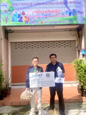 โดยฐานความรู้ด้าน “ฐานชีวภาพ” และนวัตกรรมจุลินทรีย์ที่มีประสิทธิภาพ สู่การพัฒนาชุมชน ท้องถิ่น และสร้างกลไกการมีส่วนร่วมของภาคคีความร่วมมือภาคส่วนในสังคม แก้ปัญหาขยะเศษอาหารจากต้นทาง และเปลี่ยนขยะเป็นประโยชน์แปรรูปเป็นผลิตภัณฑ์ชุมชน สร้างมูลค่า คุณค่า เสริมอาชีพ รายได้ เศรษฐกิจชุมชน พร้อมกับ การแก้ปัญหาขยะล้นเมือง ฟื้นฟูสิ่งแวดล้อม ดิน น้ำ ป่า ระบบนิเวศ ฯลฯ และขับเคลื่อนร่วมกับภาครัฐ และ ประชาสังคม สื่อมวลชน ฯลฯ ลดภาวะโลกร้อน ภาวะโลกเดือด ซึ่งเป็นปัญหาระดับนานาชาติ รวมทั้งประเทศไทยของเรา โดยกิจกรรมกัน ของ Gulf และ สนพท. คือ ในเดือนถัดไป คือ ในวันที่ 5 พฤศจิกายน 2567 จะขับเคลื่อนกิจกรรม จัดตั้งศูนย์เรียนรู้และธนาคารจุลินทรีย์ที่มีประสิทธิภาพ ร่วมกับ กำนัน และคณะกรรมการชุมชน ต.ป่าป้อง อ.ดอยสะเก็ด จ.เชียงใหม่ ตามแนวยุทธศาสตร์เมืองจุลินทรีย์ ฯ เพื่อฟื้นฟู “ป่าต้นน้ำและหุบเขาจุลินทรีย์” ฟื้นระบบนิเวศป่าไม้ ป้องกันไฟป่า ลดคาร์บอน และ เป็นการเสริมสร้างอาชีพ ผลิตภัณฑ์ชุมชน สู่การพัฒนาเศรษฐกิจชุมชน และ ลดต้นทุนทางการเกษตร ฯลฯ
