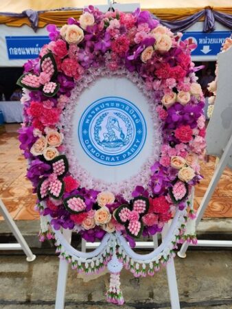 พร้อมด้วยนายธนิตพล ไชยนันทน์ นายกุลเดช พัวพัฒนกุล นายธีระชาติ ปางวิรุฬห์รักษ์ นางรัชฎาภรณ์ แก้วสนิท นางเจิมมาศ จึงเลิศศิริ อดีตสมาชิกสภาผู้แทนราษฎร นางสาวเจนจิรา รัตนเพียร โฆษกพรรคประชาธิปัตย์ นายเมฆินทร์ เอี่ยมสอาด กรรมการบริหารพรรค นางสาวอาภรณ์ รองเงิน รองผู้อำนวยการพรรคและดร.รุจชรินทร์ ทองใหญ่ กรรมการฝ่ายกฎหมาย พรรคประชาธิปัตย์เป็นผู้วางพวงมาลาในนามพรรคประชาธิปัตย์