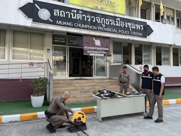 พ.ต.อ.ปัญญา ท้วมศรี ผกก.สภ.เมืองชุมพร  กล่าวว่า ได้ดำเนินการสำรวจของกลางประเภทอาวุธปืนซึ่งเก็บรักษาอยู่ที่สถานีตำรวจในสังกัด ที่ศาลมีคำพิพากษาถึงที่สุดให้ริบเป็นของแผ่นดินประเภทอาวุธปืนไทยประดิษฐ์ที่ไม่มีเครื่องหมายทะเบียนที่ยังไม่ได้ทำลาย ประจำปีงบประมาณ 2568 จำนวน 57 กระบอก ที่เก็บรักษาอยู่ที่สถานีตำรวจ เมืองชุมพร  โดยผู้บังคับการตำรวจภูธรจังหวัดชุมพรได้แต่งตั้งคณะกรรมการและอนุมัติให้ทำลายของกลางแล้ว โดยให้คณะกรรมการทำลายของกลางนำอาวุธปืนดังกล่าวมาดำเนินการทำลายด้วยวิธีการตัด ทุบ เผา ฝัง กลบ ณ บริเวณ สภ.เมืองชุมพร