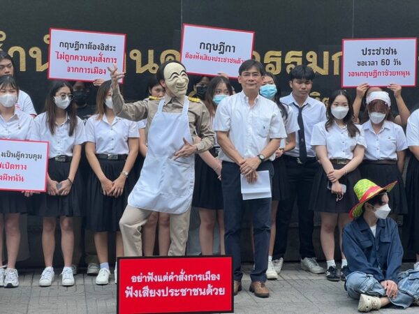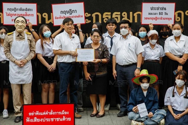 วันที่ 7 กุมภาพันธ์ 2568 เวลาท 10.00 น. หน้าอาคารสำนักงานคณะกรรมการกฤษฎีกา ถนนพระอาทิตย์ นายธนากร คมกฤส เลขาธิการมูลนิธิรณรงค์หยุดพนัน พร้อมด้วยตัวแทนมูลนิธิเด็ก เยาวชนและครอบครัว เครือข่ายเยาวชนลดปัจจัยเสี่ยง เครือข่ายนักศึกษานิติศาสตร์ และเครือชุมชนลดปัจจัยเสี่ยงกว่า 50 คน เข้ายื่นหนังสือถึงเลขาธิการคณะกรรมการกฤษฎีกา เพื่อแสดงจุดยืนให้ฟังเสียงประชาชน มากกว่ารับคำสั่งฝ่ายการเมือง โดยเครือข่ายได้แสดงละครล้อเลียน คณะกรรมการกฤษฎีกา ที่เปรียบเสมือนพ่อครัวอย่าแต่มุ่งทำอาหารประเคนฝ่ายการเมือง โดยไม่ให้ความสำคัญกับเสียงสะท้อนความต้องการของประชาชน พร้อมชูป้ายข้อความอาทิ กฤษฎีกาต้องอิสระไม่ถูกควบคุมสั่งการจากการเมือง รัฐบาลต้องเป็นผุ้ควบคุมไม่ใช่เปิดทางสร้างผีพนัน กาสิโนต้องอยู่ภายใต้ พรบ.พนัน เป็นต้น