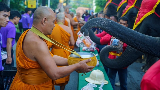 วันนี้เวลา 07.00 น. นายกัมพล ตันสัจจา ประธานสวนนงนุชพัทยาคณะผู้บริหาร และประชาชนทั่วไปร่วมประกอบพิธีทำบุญตักบาตร พระสงฆ์ 9 รูป ช้าง 19 เชือก ซึ่งเป็นประเพณีที่ดีงามที่ทางสวนนงนุชดำเนินการมาอย่างต่อเนื่องมากกว่า10 ปี ในพิธีมีการประพรมน้ำพระพุทธมนต์ให้ผู้เข้าร่วมพิธีและโขลงช้าง เพื่อความเป็นสิริมงคลกับผู้มาร่วมทำบุญ
