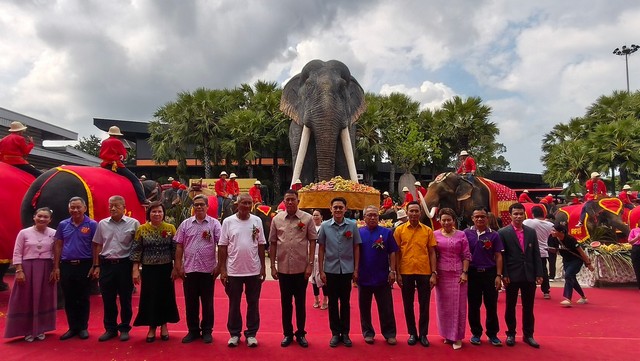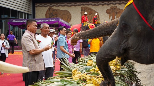 สวนนงนุชพัทยา จัดงานใหญ่วันช้างไทย 13 มีนาคมของทุกปีพร้อมเลี้ยงบุฟเฟต์ขันโตกผลไม้ยักษ์สูงกว่า 3 เมตร