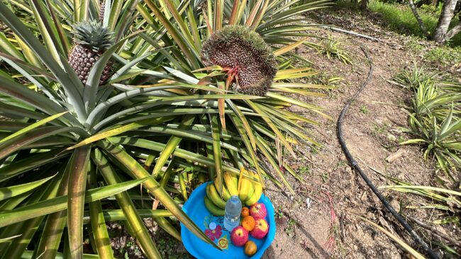 จากการตรวจสอบสับปะรดทั้งหมดที่อยู่ภายในสวนทุเรียน ซึ่งปลูกในเนื้อที่กว่า 30 ไร่ พบว่า มีต้นนี้ต้นเดียวที่ออกลูกแปลกประหลาดและแตกต่างจากต้นอื่นๆ ซึ่งกลายเป็นที่สนใจของชาวบ้านโดยแวะเวียนมาดูสับปะรดต้นนี้อย่างไม่ขาดสาย เพราะไม่เคยพบเห็นมาก่อน