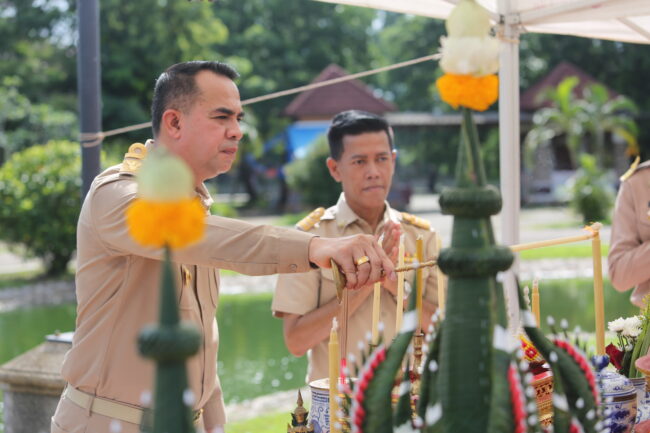 วันนี้ (19 พ.ค. 68) เวลา 08.30 น. ณ สวนอาภากรเกียรติวงศ์ (สวนสาธารณะเทศบาลเมืองชุมพร) นายสุพจน์ บุปผา ปลัดเทศบาลเมืองชุมพร ปฏิบัติหน้าที่ นายกเทศมนตรีเมืองชุมพร เป็นประธานในพิธีทางศาสนาและพิธีบวงสรวงเนื่องในงานรำลึกวันสิ้นพระชนม์ พลเรือเอก พระเจ้าบรมวงศ์เธอ พระองค์เจ้าอาภากรเกียรติวงศ์ กรมหลวงชุมพรเขตอุดมศักดิ์ ร่วมด้วย นายเจริญ โพธิ์ศรีทอง รองปลัดเทศบาลเมืองชุมพร หัวหน้าส่วนการงาน พนักงานเทศบาล พนักงานครู และพนักงานจ้างเทศบาลเมืองชุมพร กลุ่มพัฒนาสตรีเทศบาลเมืองชุมพร พร้อมด้วย ชุมชนและกลุ่มต่างๆ ร่วมประกอบพิธีทางศาสนา พิธีวางพวงมาลา พิธีบวงสรวงดวงพระวิญญาณฯ การกล่าวสดุดีเทิดพระเกียรติฯ และรำบวงสรวง โดยกลุ่มพัฒนาสตรีเทศบาลเมืองชุมพร