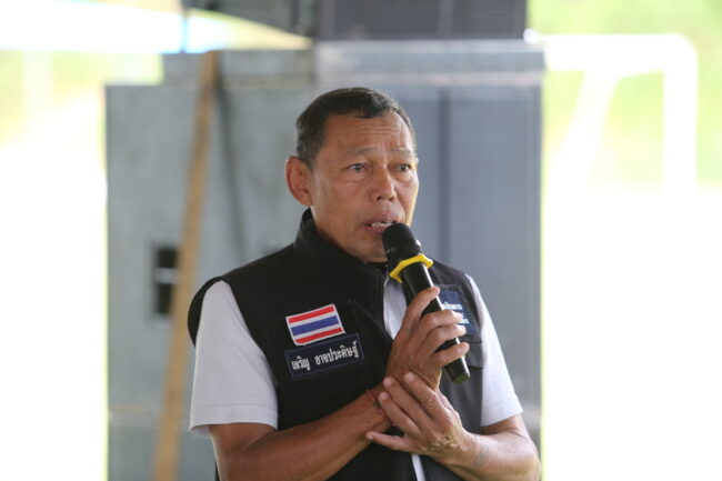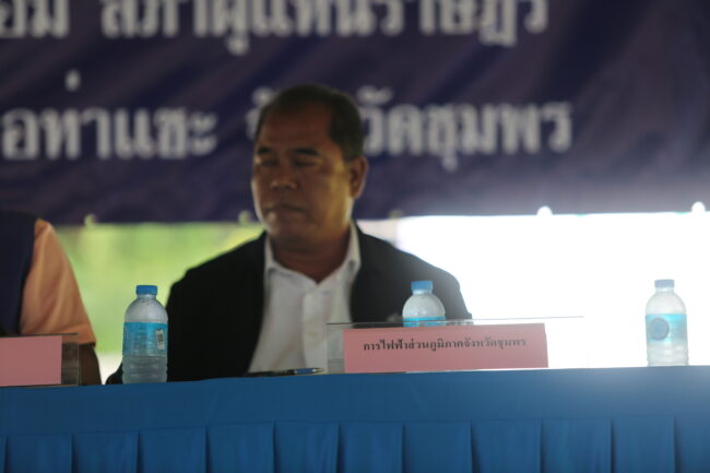 นายอวยพร มีเพียร อดีต นายก อบต.รับร่อ กล่าวต้อนรับและรายงานการสัมมนาในนามคณะกรรมาธิการการที่ดิน ทรัพยากรธรรมชาติและสิ่งแวดล้อม สภาผู้แทนราษฎร