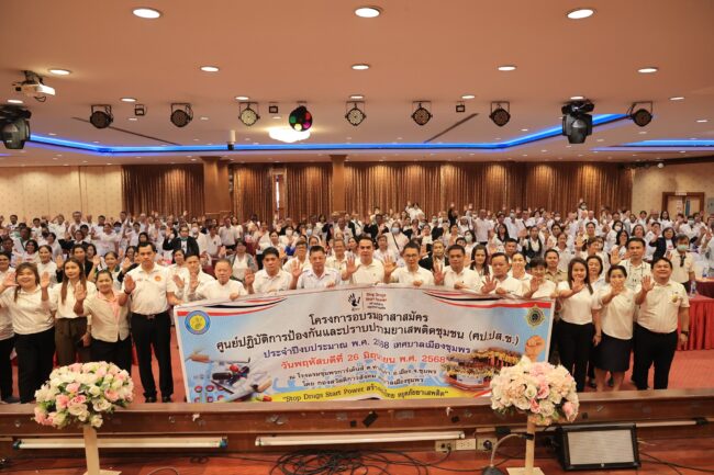 ชุมพร – เทศบาลเมืองชุมพร จัดโครงการอบรมอาสาสมัครศูนย์ปฏิบัติการป้องกันและปราบปรามยาเสพติดชุมชน (ศป.ปส.ช.) ภายใต้แนวคิดและคำขวัญ “Stop Drugs, Start Power สร้างพลังไทย หยุดภัยยาเสพติด”