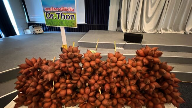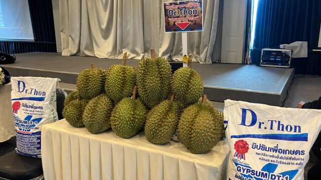 หลังจากจบบรรยาย ผู้ลงทะเบียน เข้ารับฟังก็ได้รับ ยิปซัมเพื่อการเกษตร Dr.Thon เป็นนวัตกรรม ใหม่ เพื่อพี่น้องเกษตร ไปใช้เพื่อให้พืชสังเคราะห์แสง และช่วยการสร้างอาหารของพืช ฟรี 25 กม