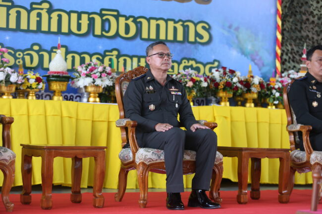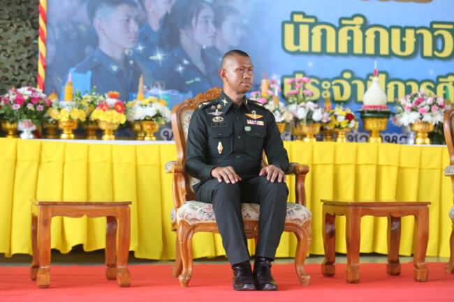 ร.อ. ยอดชาย เมฆอากาศ นายทหารเตรียมการ นฝ.นศท.มทบ.44 รายงาน ในนามตัวแทนของหน่วยฝึกนักศึกษา วิชาทหาร ขอขอบพระคุณท่านผู้บัญชาการมณฑลทหารบกที่ 44 เป็นอย่างสูง ตามนโยบายของหน่วยบัญชาการรักษาดินแดน/ ให้หน่วยฝึกที่รับผิดชอบการฝึกนักศึกษาวิชาทหาร กระทำพิธีไว้ครูเป็นประจำทุกปี และเปิด การฝึกศึกษา ประจำปีการศึกษา 2568 หน่วยฝึกนักศึกษาวิชาทหาร ศูนย์ฝึกค่ายเขต อุดมศักดิ์แห่งนี้ มีสถานศึกษาวิชาทหารเข้าร่วมพิธีไหว้ครู จำนวน 21สถานศึกษา โดยจัดตัวแทนนักศึกษาวิชาทหาร มาร่วมพิธีไหว้ครูครบทุกสถานศึกษา เนื่องจาก พิธีไหว้ครูดังกล่าว เป็นประเพณีที่สำคัญ/ สำหรับ นักเรียนนักศึกษา เพื่อที่จะให้ลูกศิษย์ได้มีโอกาสแสดงออกถึง ความกตัญญูกตเวที ต่อครู อาจารย์ ซึ่งได้ประสิทธิ์ประสาทวิชา ความรู้ตามกรอบการ ฝึกของนักศึกษา วิชาทหาร/ และเพื่อเป็นการส่งเสริมศีลธรรม จริยธรรม ประเพณีที่ดีงามสืบไป ในโอกาสอันเป็นสิริมงคลนี้ กระผมขอเรียนเชิญท่านประธาน ได้กรุณาเจิมตำราเพื่อเป็นสิริมงคล และขออนุญาตให้ผู้แทน นักศึกษาวิชาทหาร เป็นผู้กล่าวนำในการไหว้พระสวดมนต์ กล่าวคำบูชาครู และกล่าวคำปฏิญาณ พร้อมทั้งนำพานดอกไม้ธูปเทียนไหว้บูชาครู ตามลำดับต่อไป