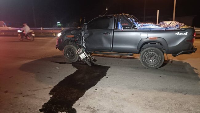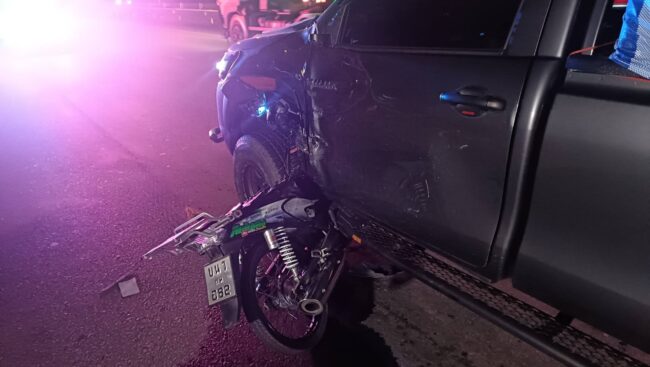 ชุมพร – ชนกลางลำ ยูเทิร์น วัดใจขุนกระทิง จักรยานยนต์ติดในซอกล้อ รถกระบะ เสียชีวิตคาที่