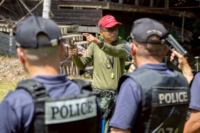 ชุมพร – ภูธรจังหวัดชุมพร โครงการฝึกอบรมครูฝึกยิงปืนต้นแบบระดับสถานีตำรวจ (ครู ค)
