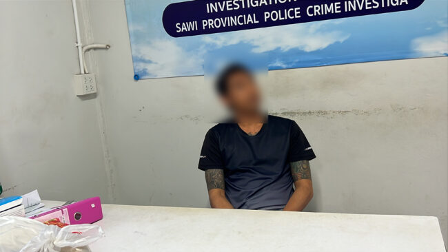 ต่อมาวันที่ ๙ สิงหาคม ๒๕๖๘ เวลา ๐๐.๑๐ น.เจ้าหน้าที่ตำรวจผู้จับกุม ชุดสืบสวน สภ.สวี นำโดย พ.ต.ท.ถิรเดช แข็งแรง รอง ผกก.สส.สภ.สวี, ว่าที่ พ.ต.ต.ชัยโรจน์ วัฒนะประสิทธิ์ สว.สส.สภ.สวี, ร.ต.อ.สมคิด จันนินวงศ์ รอง สว.สส.สภ.สวี, ร.ต.อ. ปัญญา ผลศิริปฐม รอง สว.สส.สภ.สวี, ร.ต.ท.ยงยุทธ ผุดเพชรแก้ว, ร.ต.ท.มาโนชญ์ เภาทอง, จ.ส.ต.ณัฐวัฒน์ จงไกรจักร, ส.ต.อ.อนุรักษ์ แรงเขตการ และ ส.ต.ท.วทัญญู ฤทธิชัย ผบ.หมู่ (สส.) สภ.สวี