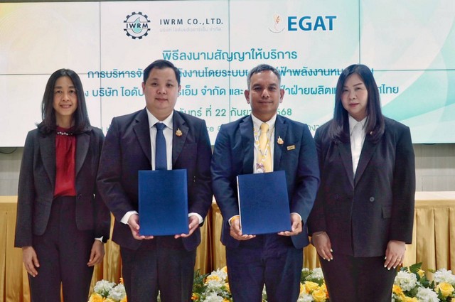 เมื่อวันที่ 22 กันยายน 2568 นายเมธาวัจน์ พงศ์รดาภิรมย์ รองผู้ว่าการธุรกิจเกี่ยวเนื่อง (รวธ.) การไฟฟ้าฝ่ายผลิตแห่งประเทศไทย (กฟผ.) ร่วมเป็นเกียรติในงานลงนามสัญญา (MOU) ให้บริการบริหารจัดการพลังงานโดยระบบผลิตไฟฟ้าพลังงานหมุนเวียน ระหว่าง กฟผ.และ บริษัท ไอดับบลิวอาร์เอ็ม จำกัด (IWRM) ผู้ให้บริการน้ำเพื่ออุตสาหกรรมรายใหญ่ในพื้นที่ ระเบียงเศรษฐกิจภาคตะวันออก (EEC) โดยมีนายสายัณห์ ปานซัง ผู้ช่วยผู้ว่าการบริหารธุรกิจ (ชธก.) และนายธนวัฒน์ สันตินรนนท์ กรรมการผู้จัดการ IWRM ร่วมลงนามในสัญญา พร้อมด้วยนางณิศรา ธัมมะปาละ ผู้อำนวยการฝ่ายจัดการธุรกิจนวัตกรรมพลังงาน (อธพ.) และนางอัมพวัน พงศ์สิทธิศักดิ์ ประธานเจ้าหน้าที่ฝ่ายปฏิบัติการ IWRM ลงนามในฐานะพยาน ณ ห้อง Press Conference สำนักงานใหญ่ กฟผ. จ.นนทบุรี