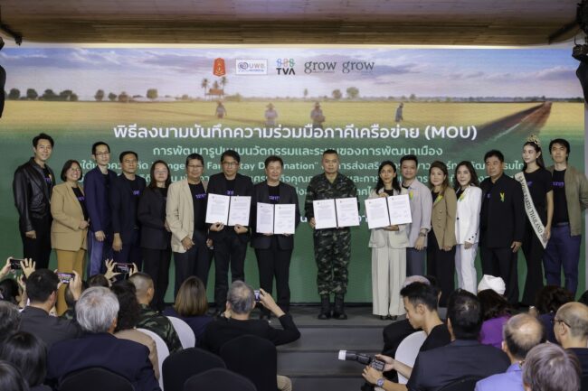 ในงานยังได้มีพิธีลงนามบันทึกความร่วมมือภาคีเครือข่าย (MOU) การพัฒนารูปแบบนวัตกรรมและระบบของการพัฒนาเมือง ภายใต้แนวความคิด “Longevity Farm Stay Destination” ต่อการส่งเสริมซอร์ฟพาวเวอร์ทางวัฒนธรรมไทย
