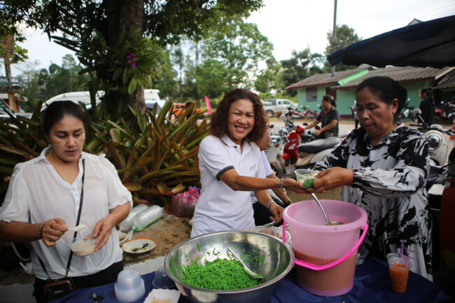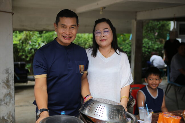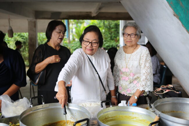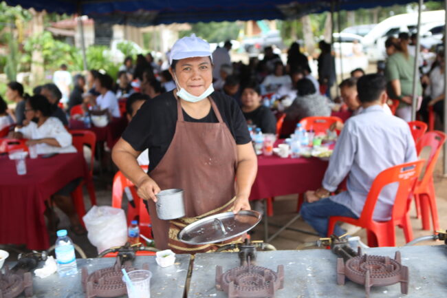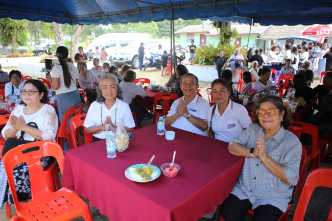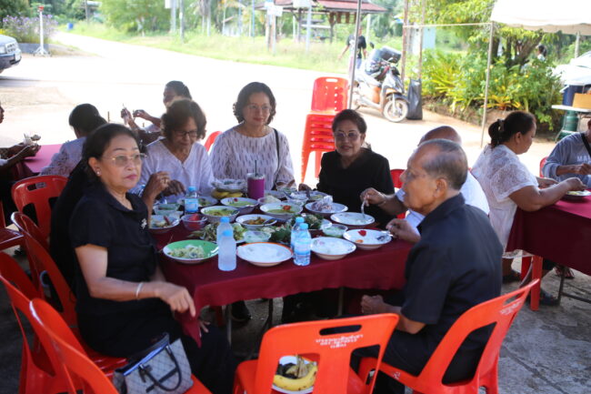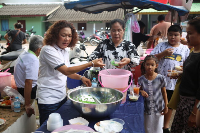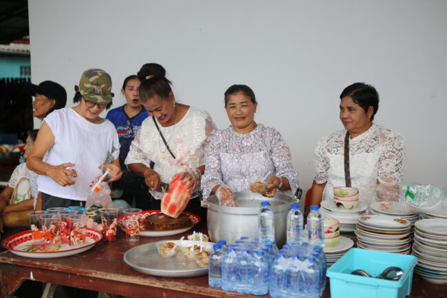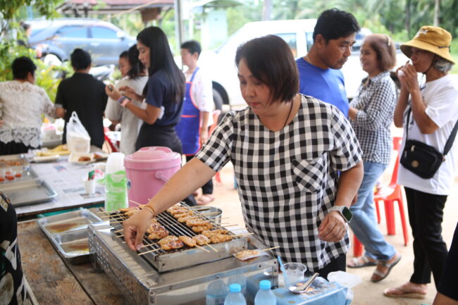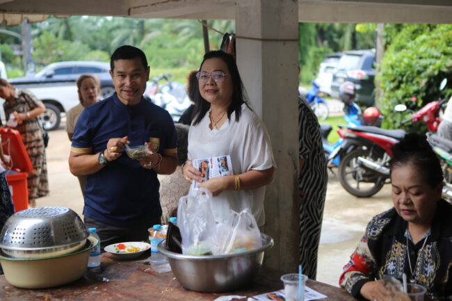 บรรยากาศภายในงานเต็มไปด้วยความอบอุ่นและร่มเย็น พุทธศาสนิกชนจากหลายพื้นที่ต่างนำอาหารคาวหวานมาจัดโรงทาน ทั้งอาหารพื้นบ้าน ขนมไทย และเครื่องดื่มไว้บริการผู้มาร่วมงาน สะท้อนให้เห็นถึงน้ำใจ ความสามัคคี และพลังแห่งศรัทธาของชาวชุมพรที่ร่วมกันสร้างบุญใหญ่ในครั้งนี้