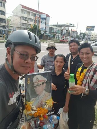 ในครั้งนี้ได้เดินทางมากับพ่อตาอายุ 62 ปีแกก็ป่วยเป็นโรคมะเร็งแต่ก็ชวนให้เดินทางออกมาเพื่อถวายความจงรักภักดีเป็นครั้งสุดท้ายพร้อมกับเพื่อนเพื่อนญาติญาติรวมทั้งหมดหกคนและขอขอบคุณเจ้าหน้าที่ทางหลวงจังหวัดชุมพรที่ได้อำนวยความสะดวกในการเดินทางด้วยความปลอดภัยและยังสนับสนุนรองเท้าหกคู่และร่มกันฝนและได้ดูแลความปลอดภัยเป็นอย่างดี