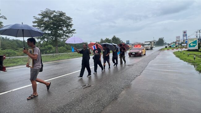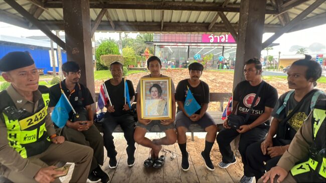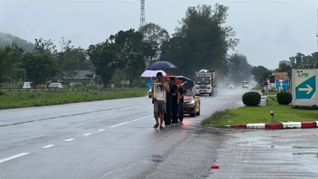 ชุมพร – ลูกเขยชวนพ่อตาและญาติ 6 ชีวิต เดินเท้าผ่านจังหวัดชุมพรเข้ากรุงฯ ถวายสักการะพระบรมศพ “พระพันปีหลวง”