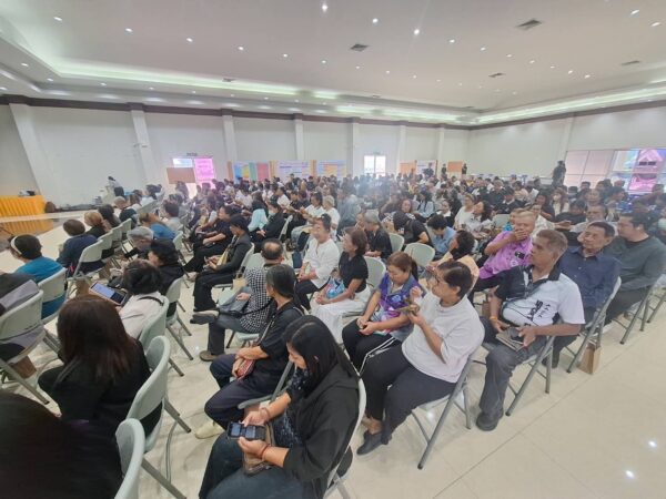 บรรยากาศภายในห้องประชุมเต็มไปด้วยความคึกคัก มีหัวหน้าส่วนราชการระดับจังหวัด คณะผู้บริหารเทศบาล ผู้นำภาคเอกชน ผู้ประกอบการด้านเศรษฐกิจ การท่องเที่ยว OTOP ร้านกาแฟ นักเรียน นักศึกษา และประชาชนในเขตเทศบาลเมืองชุมพร เข้าร่วมแลกเปลี่ยนความคิดเห็นกว่า 350 คน สะท้อนพลังความร่วมมือของคนชุมพรในการร่วมกำหนดทิศทางเมืองในอนาคต