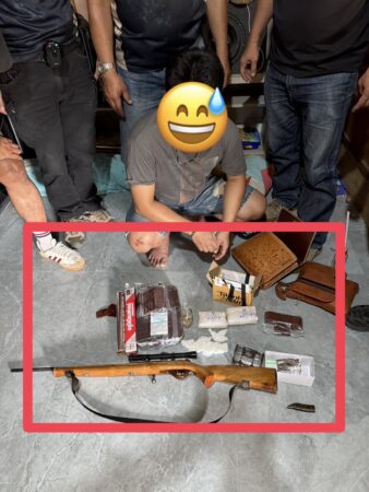 เมื่อเจ้าหน้าที่เข้าพื้นที่ พบชายต้องสงสัยซึ่งภายหลังทราบชื่อคือ นายอศิพงษ์ หรือ “หนึ่ง” ฯ มีท่าทีพิรุธ เจ้าหน้าที่จึงแสดงตัวเข้าตรวจค้นภายในบ้าน ก่อนพบของกลางจำนวนมากซุกซ่อนอยู่หลายจุดภายในบ้าน