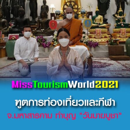 Miss Tourism World 2021 ฑูตการท่องเที่ยวและกีฬา จ.มหาสารคาม ทำบุญ “วันมาฆบูชา”…