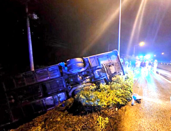 ชุมพร -วิดดับยกคัน รถบัสลงร่องกลางถนน บาดเจ็บ 9 คน เมื่อเวลา 03.00 น.วันที่ 23 มิถุนายน 25…